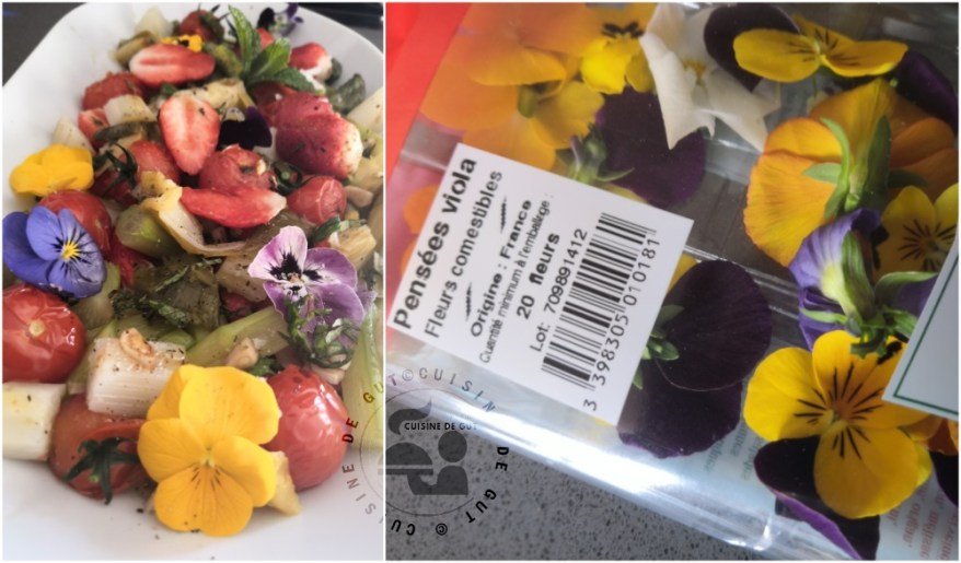 - Quelques fleurs comestibles : ici pensées Viola