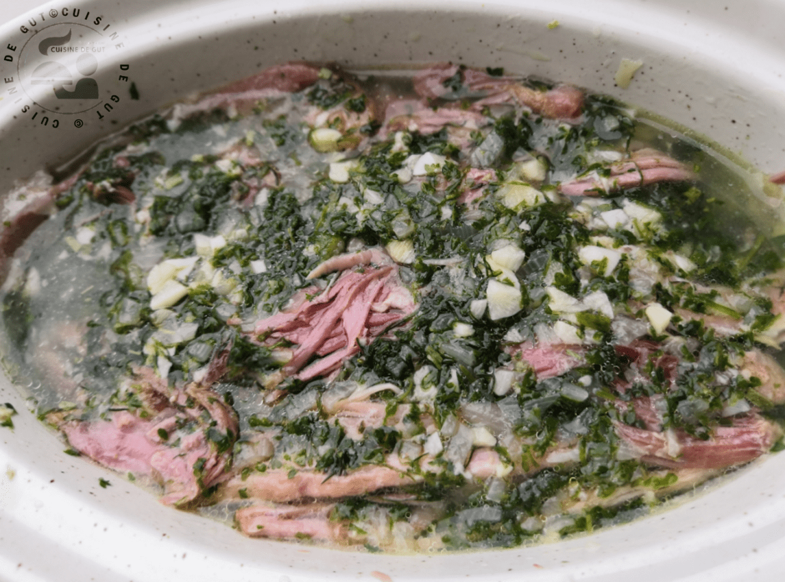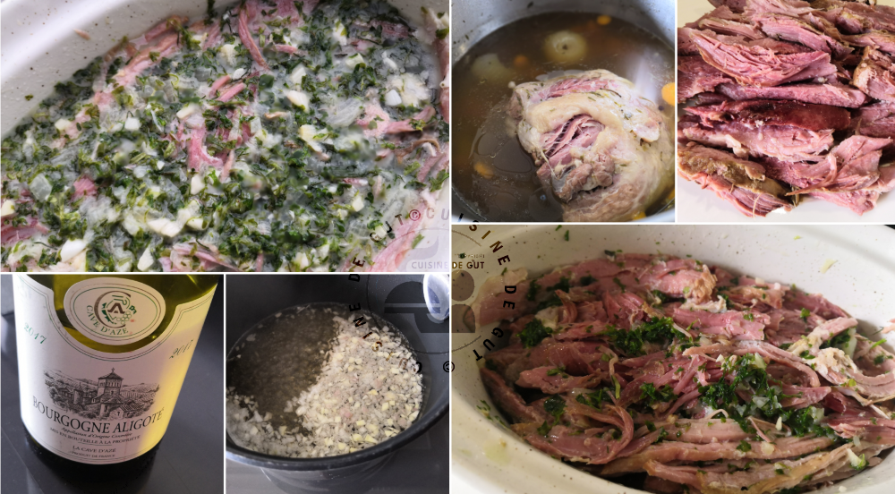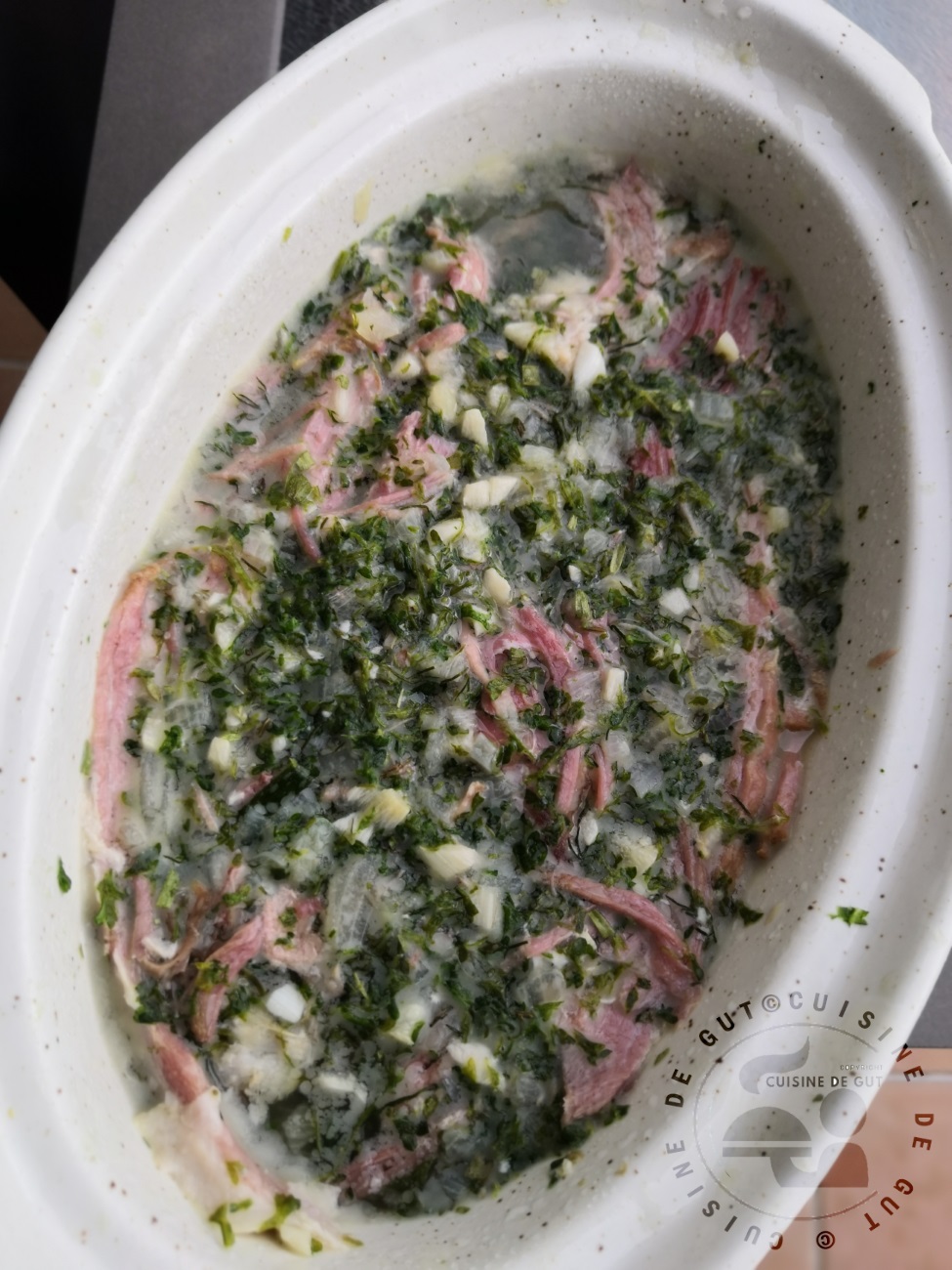 • Faire dessaler la palette dans l’eau froide, la veille, en la faisant tremper tout une nuit dans de l’eau froide. (Changer l’eau avant d’aller se coucher et le matin, avant de réaliser le jambon persillé)