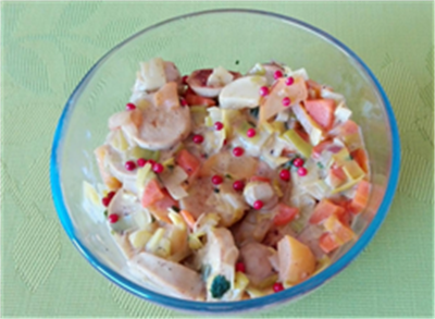 Je terminerai enfin cette mise à l’honneur avec mon amie Cécile ( La cuisine de Cécile) qui ne publie malheureusement plus sur son joli blog par manque de temps, c’est bien dommage car on y voyais de bons petits plats mais c’est quelque chose que je comprends ! Enfin rien d’empêche de passer encore sur son blog, il suffit de cliquer ICI. Elle m’a toutefois adressé une photo d’un plat qu’elle a repris de chez moi : Ma blanquette de boudin blanc aux baies roses