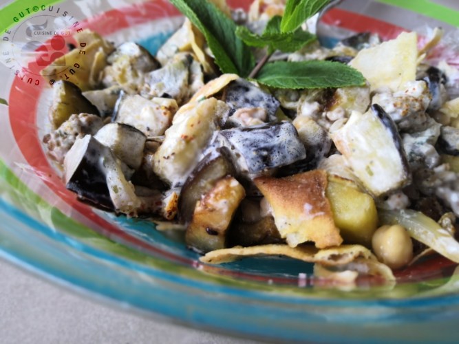 Published at 1300 × 975 in Fatteh d’aubergine à l’agneau (imitation)