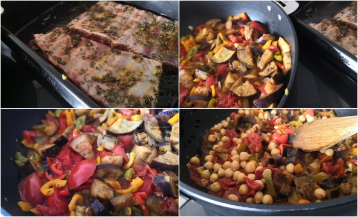 Published at 1300 × 791 in Travers de porc ratatouille sauce worcester et épices