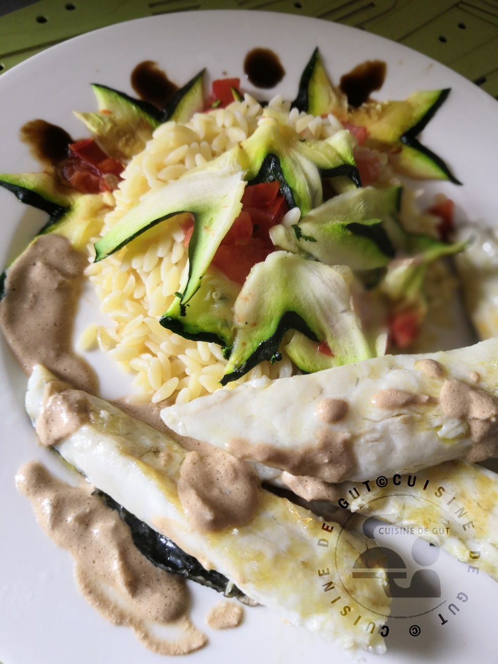 Published at 975 × 1300 in Filet de bar sauce balsamique et ses légumes