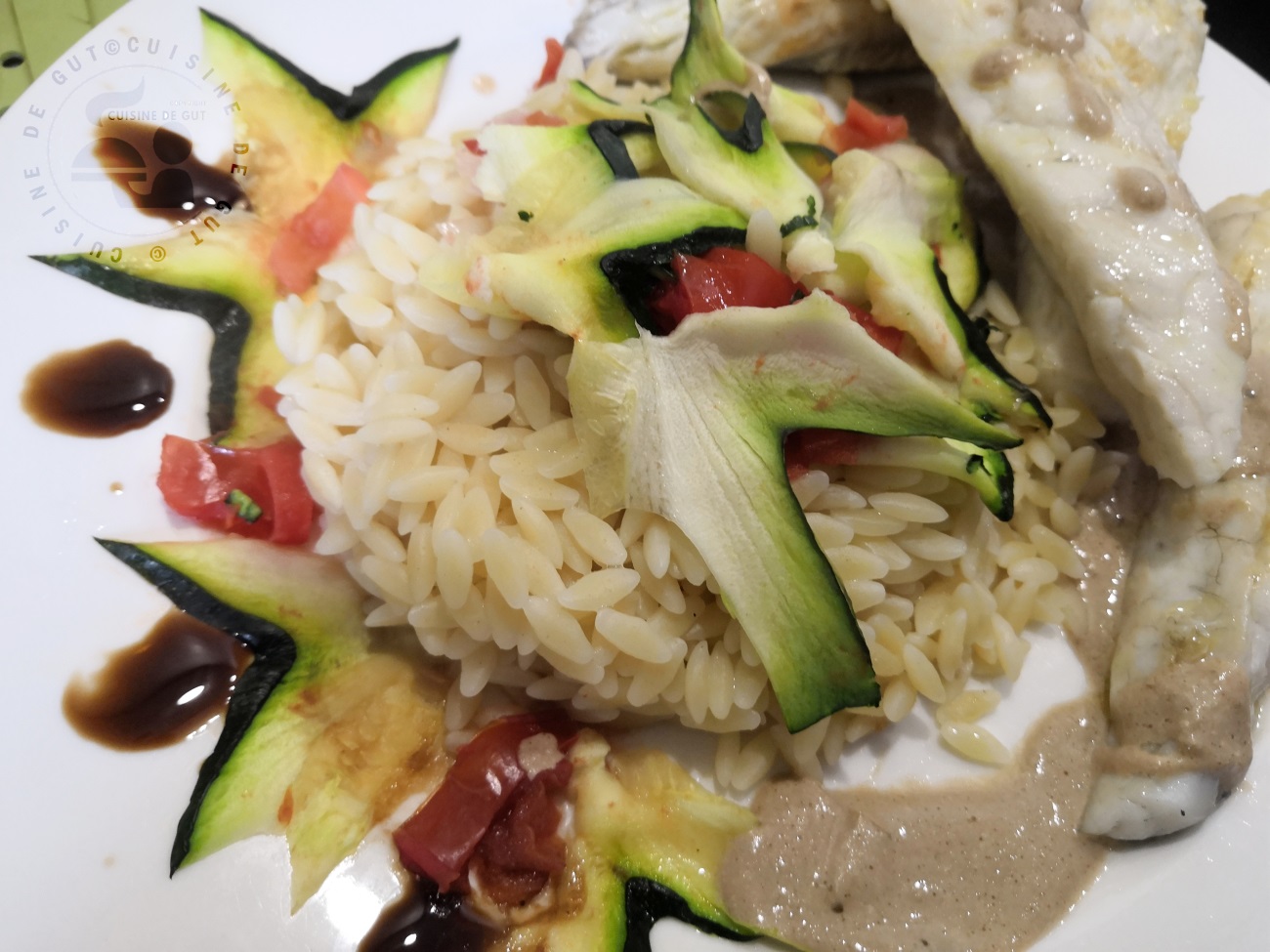 Published at 1300 × 975 in Filet de bar sauce balsamique et ses légumes