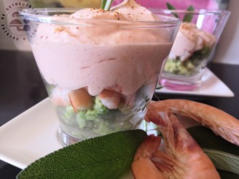 Mousse Burrata tomate aux herbes sur avocat crevettes3