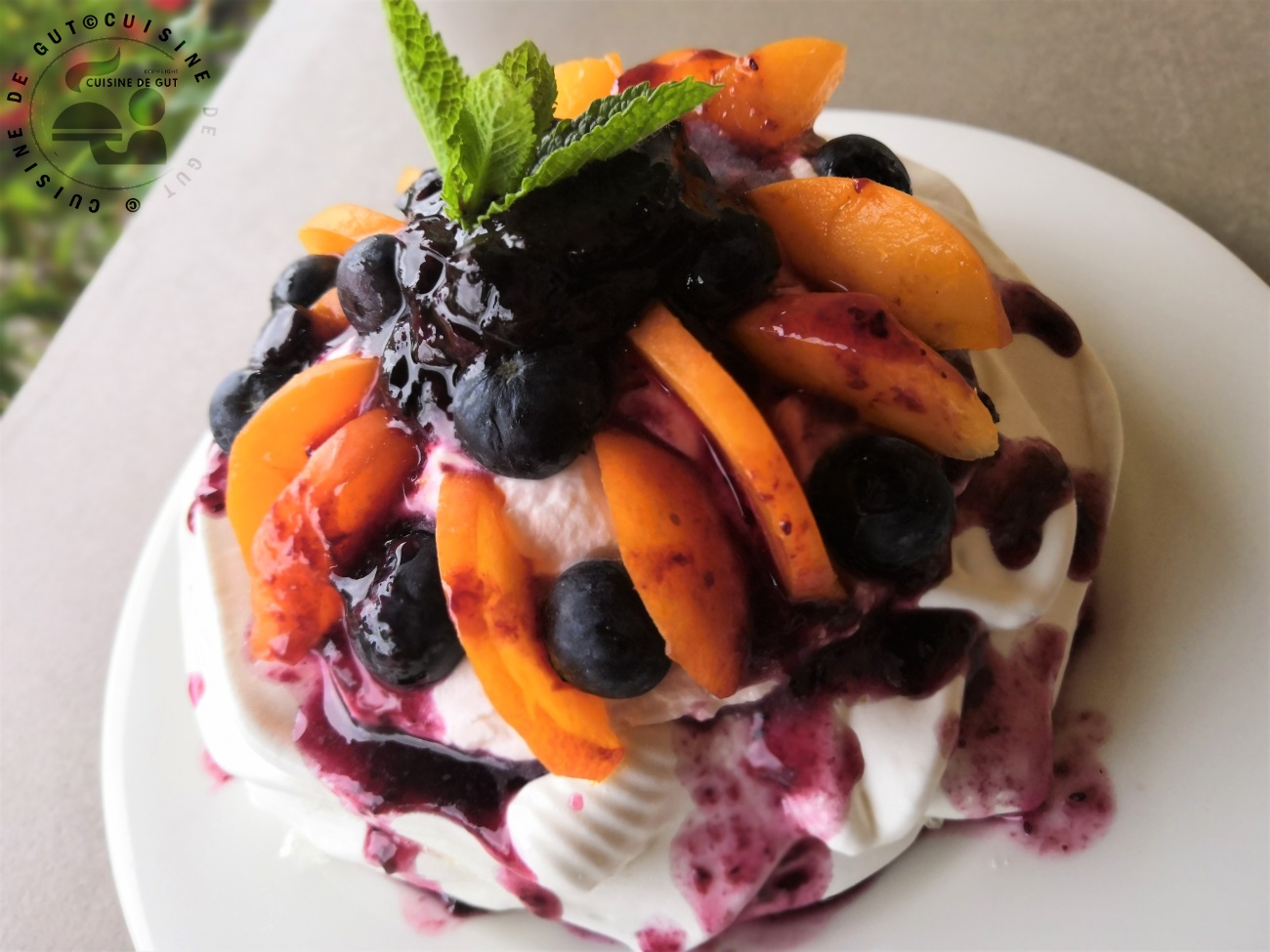 Published at 1300 × 975 in Pavlova abricot myrtilles à la Piña Colada