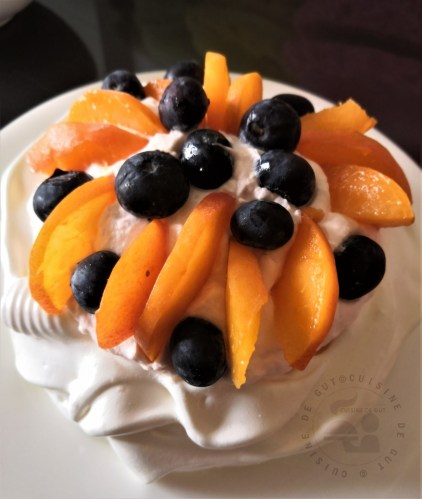 Published at 1300 × 1539 in Pavlova abricot myrtilles à la Piña Colada