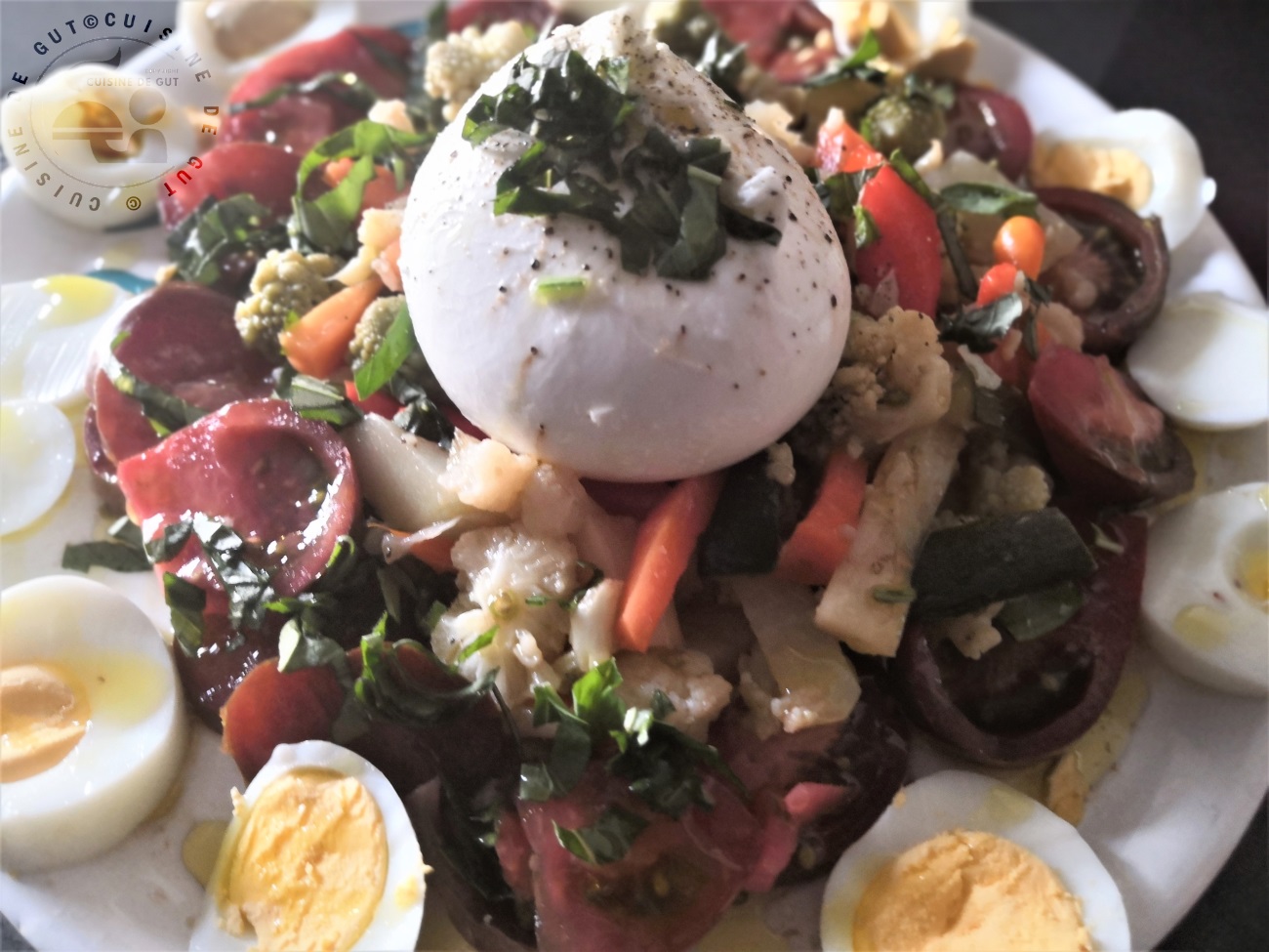 Published at 1300 × 975 in Salade de choux carottes tomates et Burrata