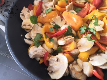 Poêlée de champignons et poivron légèrement acide et cabillaud (2)