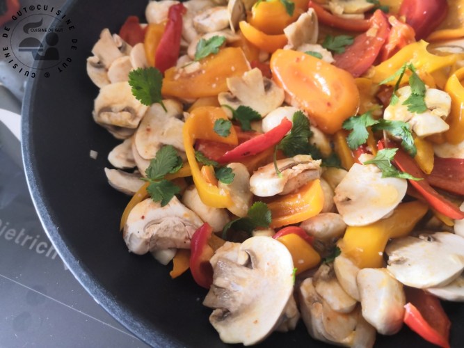 Poêlée de champignons et poivron légèrement acide et cabillaud (2)