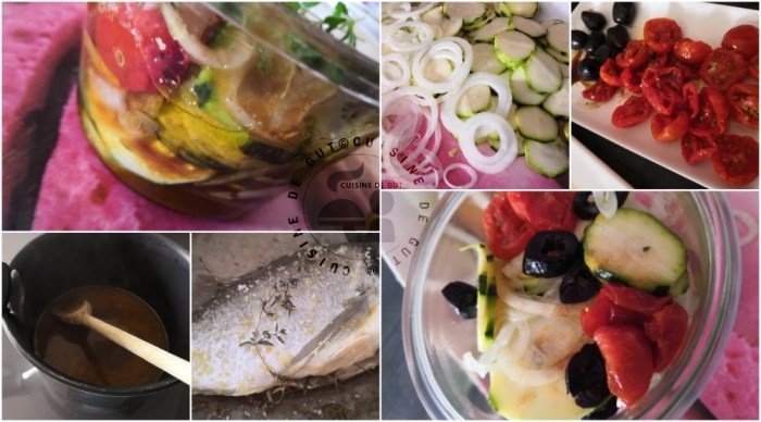 Published at 1000 × 555 in Courgettes tomates marinées et Dorade au thym