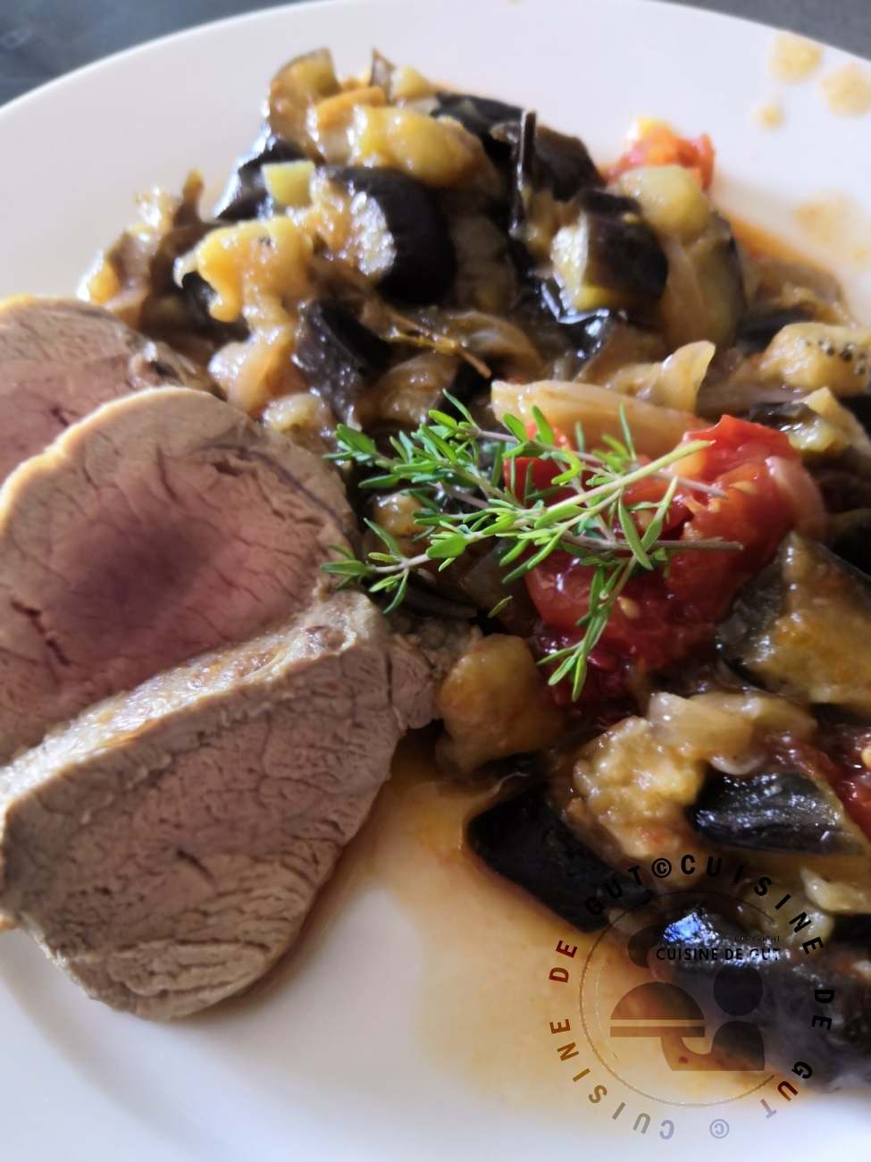 Nous aimons beaucoup le filet mignon à la maison, légèrement plus cuit que le tien, mais ça reste une pièce de viande très tendre et goûteuse. Accompagné d’aubergines, pour moi c’est juste parfait. Bonne soirée et gros bisous