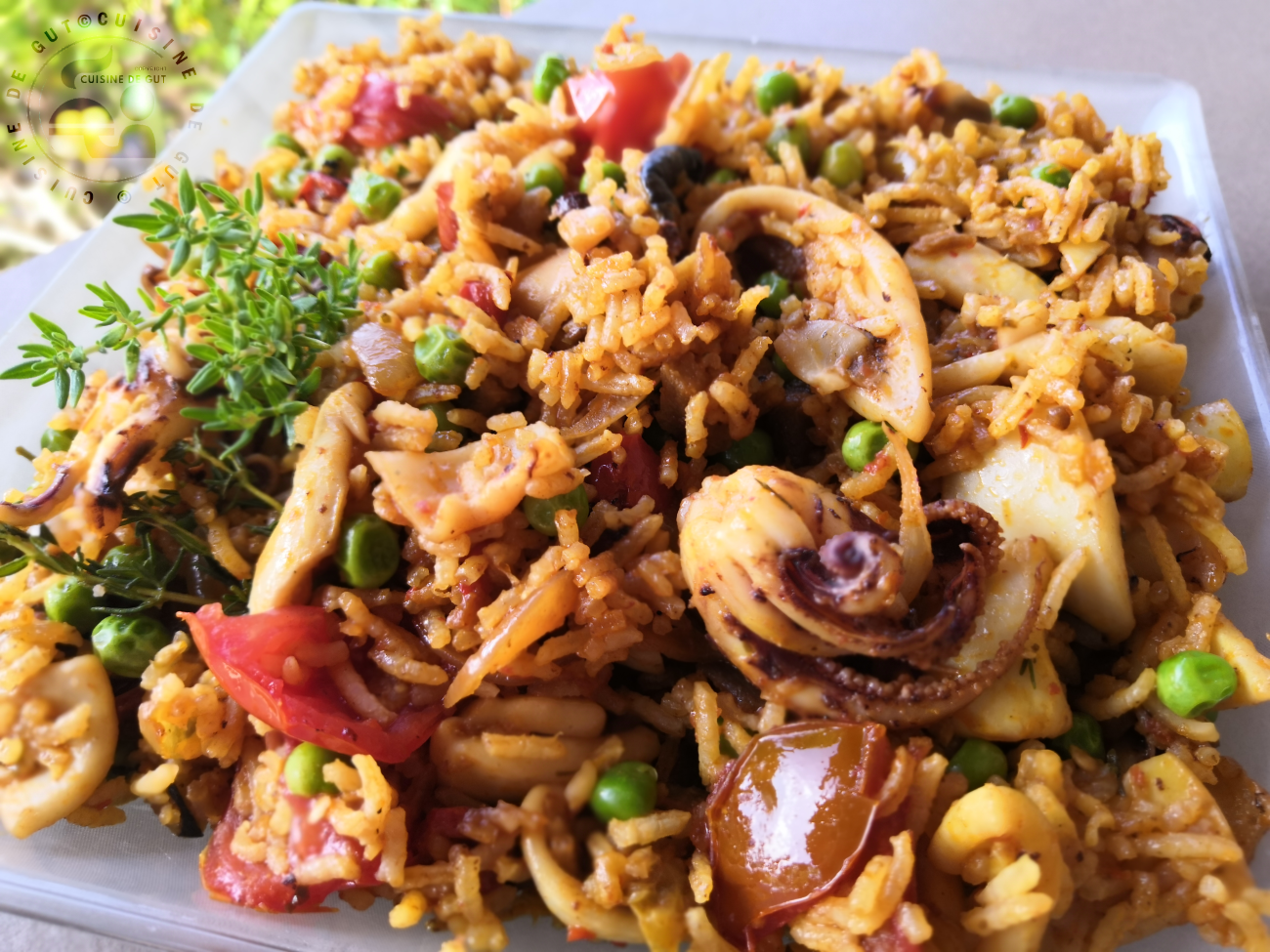 Je suis fan de cette paëlla simplifiée ! Ce n’est que lorsque je suis avec mon mari que j’achète des encornets car j’ai horreur de les préparer et donc il s’en occupe. Pourtant j’adore ça ! C’est coloré, parfumé, épicé, un vrai régal ! J’espère que tout se passe bien pour ton séjour. À bientôt, je t’embrasse