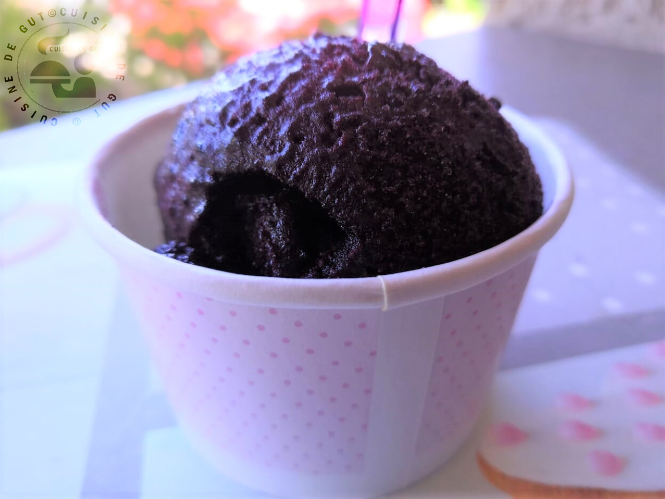 Au niveau de la texture je crois que je viens de tout vous dire : elle est parfaite. On dirait une crème glacée sans crème, donc beaucoup moins de calories mais ce n’est pas tout : vous remarquerez que je n’ai mis que très peu de sucre, encore un bon point pour manger de la glace plus souvent ! Elle était délicieuse, moi qui raffole de la myrtille j’étais aux anges, quel régal!! Je me serais bien resservie mais il faut que j’en laisse à mes enfants et petites filles 😉 ! Je suis vraiment heureuse de pouvoir dédier cette petite merveille à cuisinons de saison !