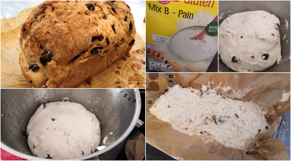 Comme j’ai plain les personnes intolérantes au gluten lorsque j’ai voulu acheter du pain sans gluten à ma belle fille Nina! Soit c’était un vulgaire pain de mie, soit le pain pesait bien lourd laissant imaginer une croûte super épaisse et une mie bien dense, tout ce que je n’aime pas ! jamais je n’aurais pu manger ces pains là. Je suis bien trop gourmande de bon pain, Nina est comme moi, du coup je n’ai pas pu me résoudre à acheter ces pains. Que faire ? Ca faisait une éternité que je n’avais pas fait de boulange mais là, j’ai décidé de m’y remettre espérant trouver comment faire ce type de pain !  Je voulais faire un pain à la farine de Maïs mais tous ceux que j’ai vu contenaient également de la farine de blé.. zut !  En continuant de chercher je suis tombée sur des témoignages qui parlaient d’un mélange de farine sans gluten. Les utilisatrices en disaient le plus grand bien. Je l’ai donc acheté sur internet en priant pour que je puisse faire quelque chose de bien avec. A la réception de ce Mix B de Schär , j’ai voulu chercher une recette directement sur le Site Schär. Malheureusement la recette du pain qui j’avais choisi, car il contenait des olives et des tomates séchées, ne donnait que les quantités. Après il était juste précisé de mettre les ingrédients dans la machine à pain et de sélectionner le cycle pain sans gluten…. avec ça débrouille toi !! Bien déterminée à y arriver j’ai tout de même tenté et de m’adapter comme j’ai pu et voici ce que cela a donné !