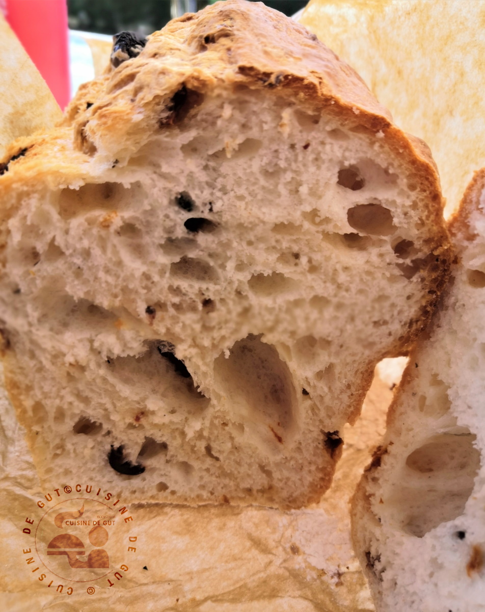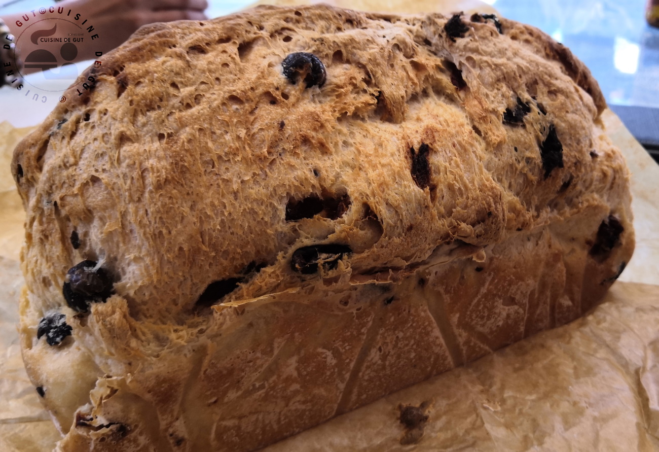 Alors toute modestie mise à part je pense que la publication de ce pain pourrait vraiment intéresser les personnes qui sont intolérantes au Gluten ! J’ai vraiment eu l’agréable surprise de voir que ce pain, et malgré le manque de farine de blé, avait super bien gonflé ! A la découpe la mie était parfaite et la croûte n’était pas du tout épaise. Le goût était vraiment sympa, bien que je n’ai pas mis autant d’olives et de tomates comme préconisé car je ne voulais tout de même pas qu’il sente trop l’olive, c’était suffisant pour lui donner un bon petit goût. J’ai vraiment été heureuse de pouvoir offrir à ma Nina un pain digne de ce nom ! c’est avec plaisir qu’elle l’a dégusté car depuis qu’elle s’est mise au sans gluten elle avait arrêté de manger du pain !  Je peux vous dire qu’elle est repartie avec la recette !  je suis bien contente !