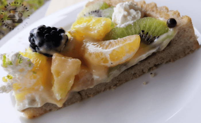 Tarte renversée aux fruits sur financiier et crème pina colada