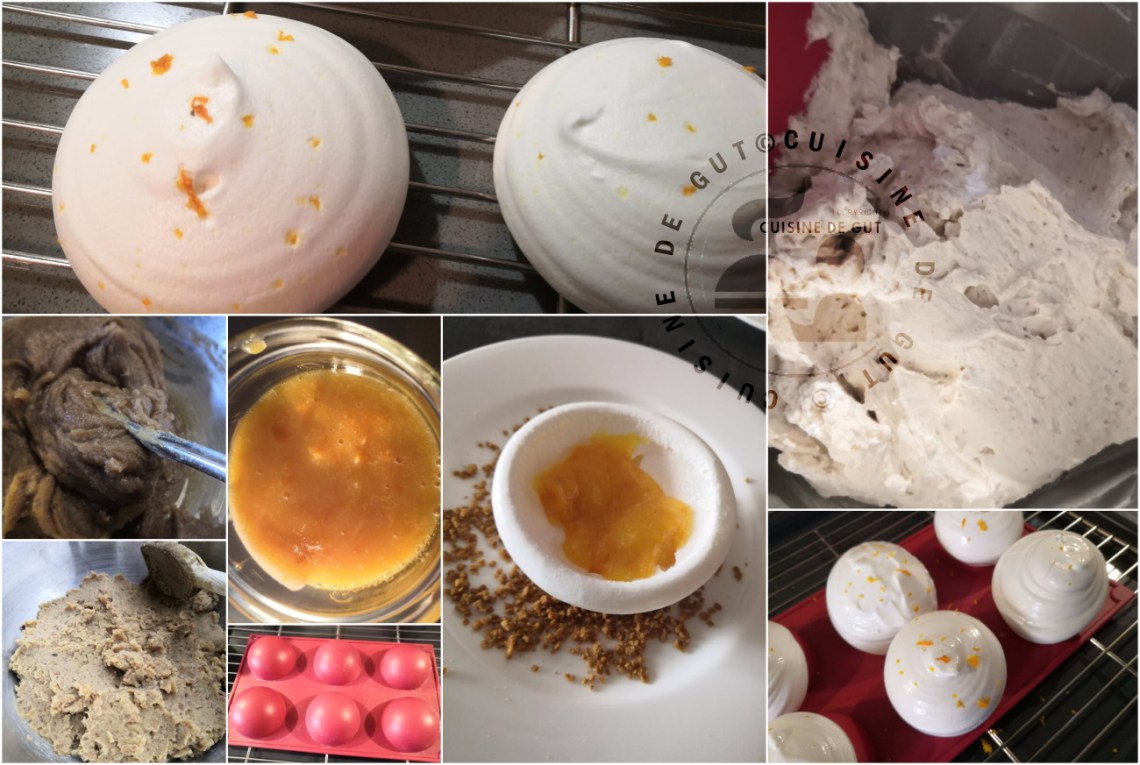 très bonne idée de faire les meringues en forme de demi sphères , une recette de fête, la crème doit être top