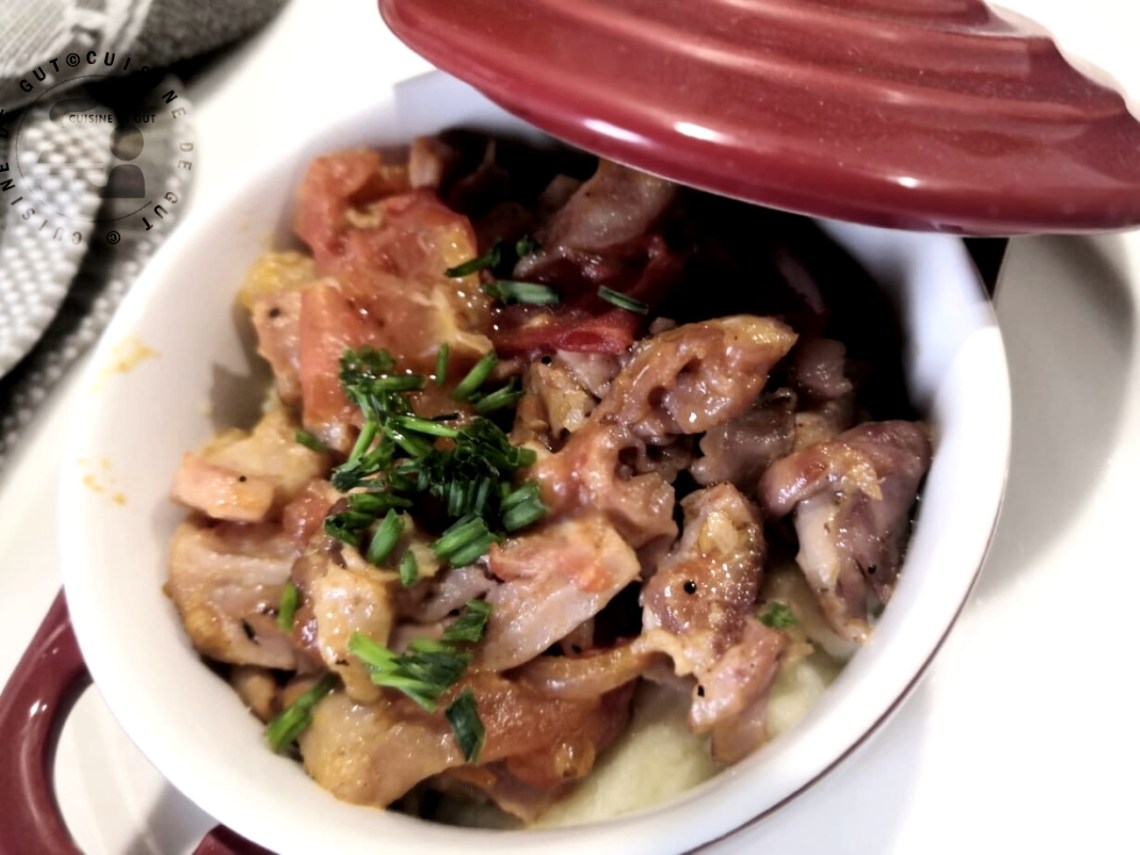 - Mettre un fond de purée dans des cassolettes ou petits plats allant au four