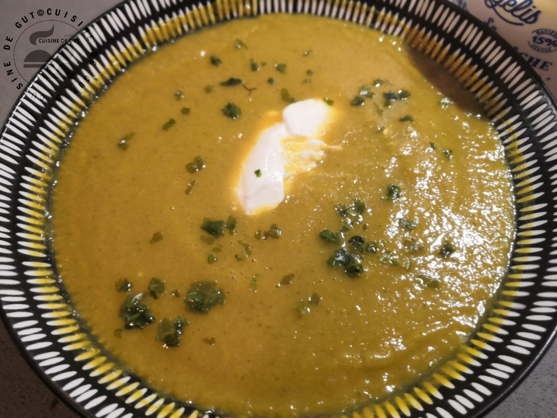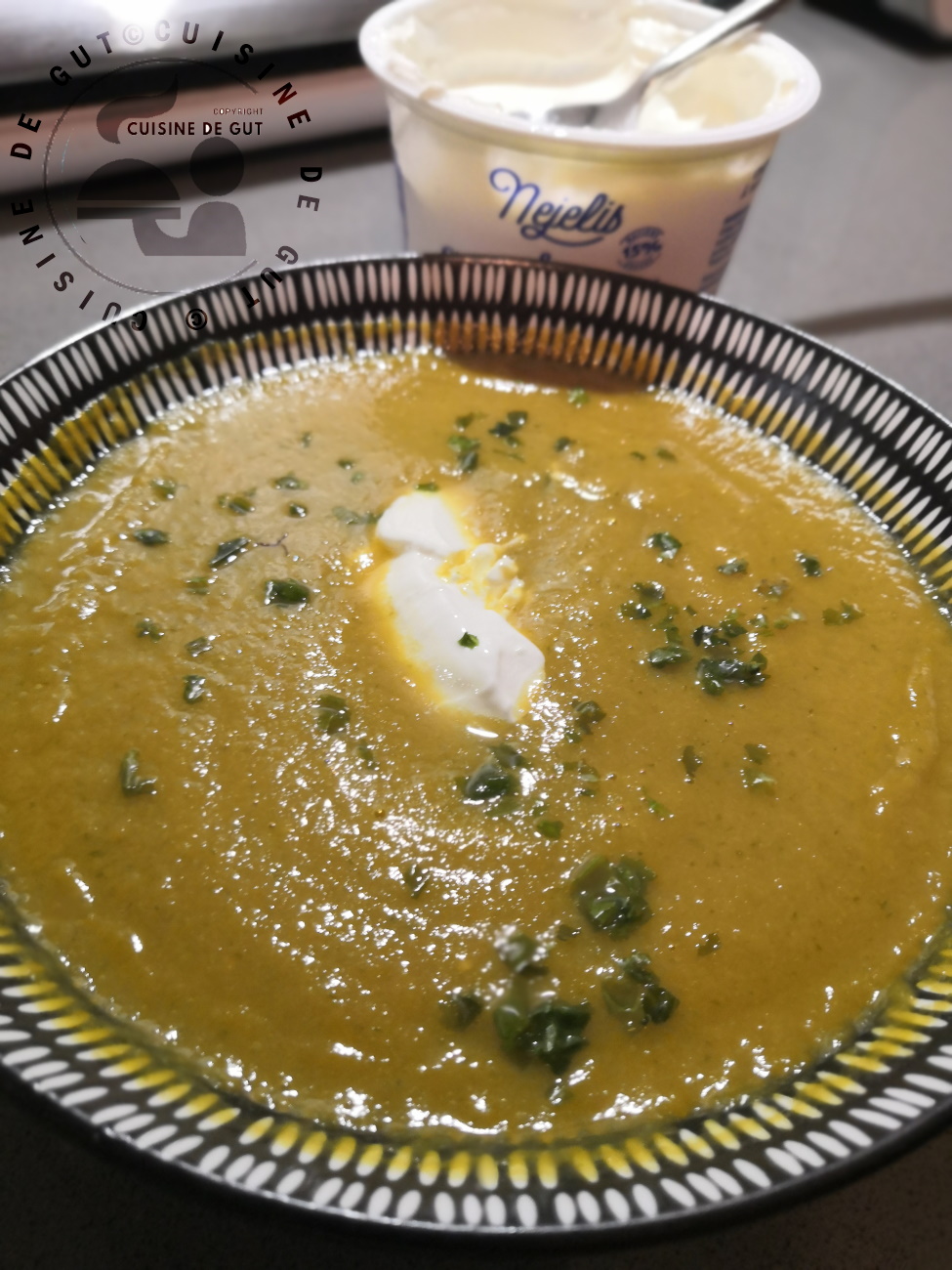 Je n’étonnerais sans doute personne en précisant que ce velouté était vraiment délicieux. J’ai ajouté une petite quenelle de crème fraîche épaisse mais allégée et franchement ce velouté était bien bon ! Le lendemain, comme il me restait de la crème de panais mais pas en quantité suffisante pour nous refaire une petite assiette je l’ai mélangé au reste de ce velouté et en l’espace de deux jours nous avons mangé 2 délicieuses petites soupes ! De ce temps ça fait du bien car pendant que je tape cet article c’est le début de la tempête !! Voici donc un bon potage que je dédie à cuisinons de saison !