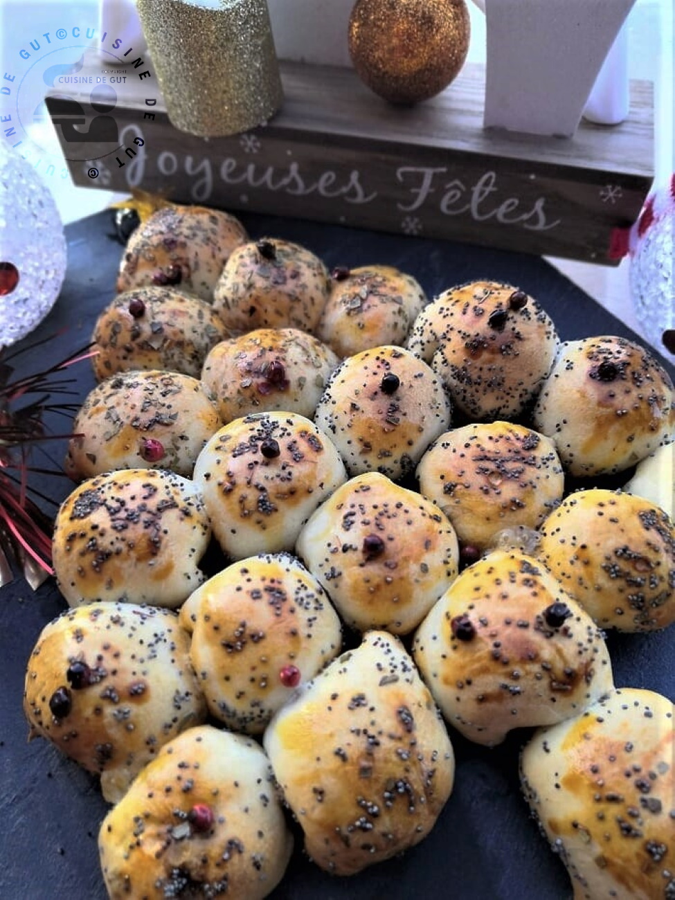 Je voulais profiter de mes enfants qui ne venaient pas très longtemps alors j’ai préparé beaucoup de choses à l’avance et j’ai congelé. Je peux dire merci Mr congélo car ça m’a permis en plus de pouvoir étaler dans le temps sinon je n’aurais jamais tenu le coup pour tout faire ! Il a eu beaucoup de succès ce sapin, je n’ai pu en manger qu’une boule !!! 🙂 merci Catherine gros bisous
