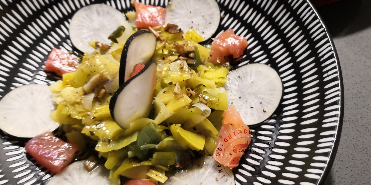 Published at 1300 × 650 in Salade de Poireaux et radis noir au Gravlax