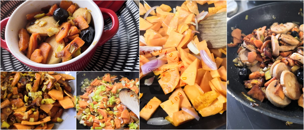 Published at 1000 × 428 in Boudin blanc patate douce poireaux et olives noires