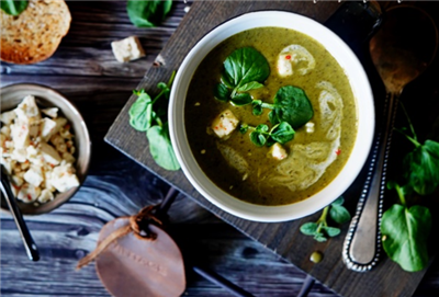 Velouté cresson patate douce et feta au piment d’Espelette
