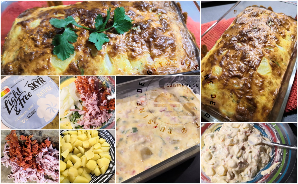 Published at 1000 × 617 in Cake aux pommes de terre bacon et chorizo au Skyr