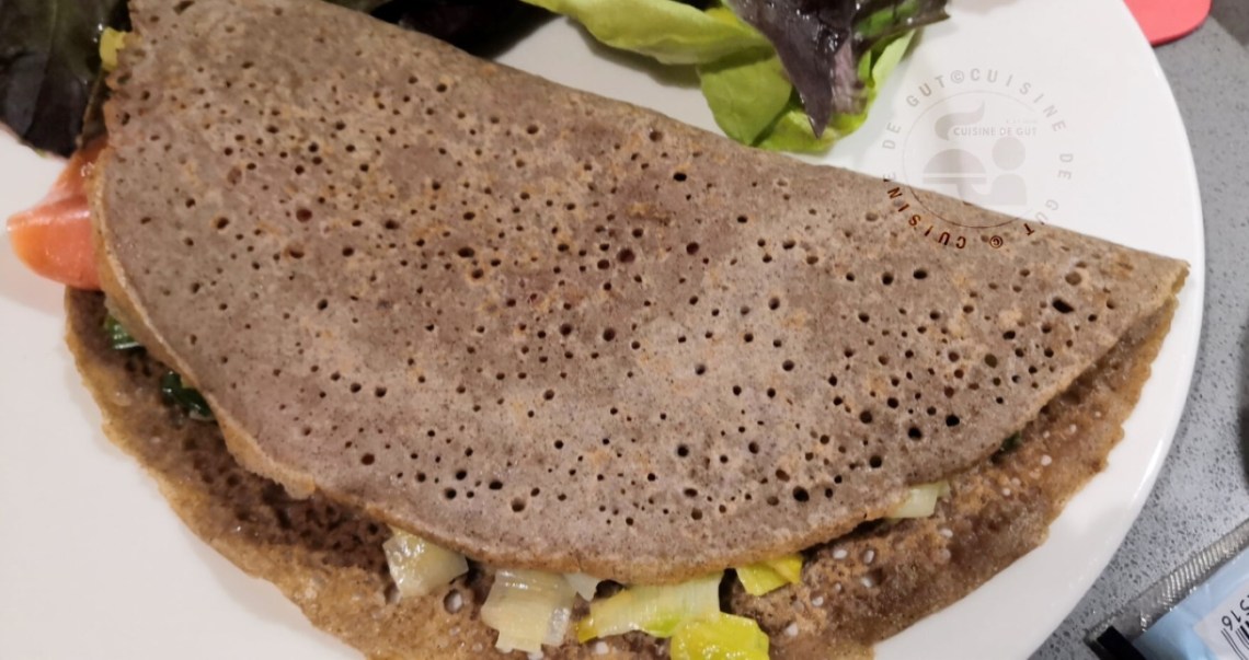 Galette de Sarrasin maison, poireau et saumon fumé
