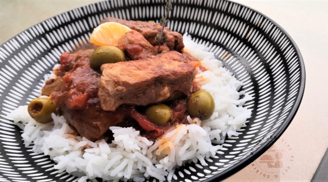 Vous le savez maintenant j’adore la tomate et l’hiver je suis bien malheureuse de ne pas pouvoir en manger ! A l’automne je fais avec mes sauces tomates faites avec des tomates d’été mais l’hiver je n’ai pas d’autre choix que de prendre des tomates en conserve ! Lorsque j’ai fait ce plat il ne faisait pas bien chaud et j’ai eu envie d’un bon petit mijoté. Une fiche cuisine trouvée chez grand frais, présentait un mijoté avec olives vin rouge et jus de clémentines Corses, tien donc eh bien pourquoi pas ?