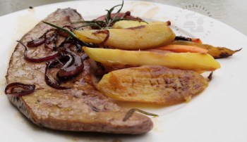 Foie de veau aux oignons rouges et son accompagnement parfumé ail et romarin