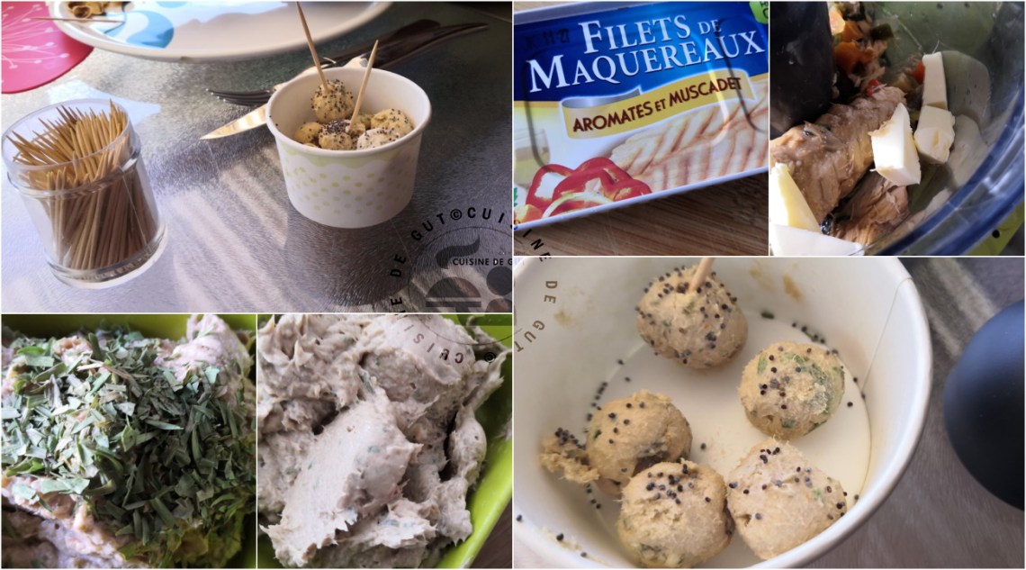 Tout a une fin ! Même les meilleures choses ! Les recettes de Boulettes pour le CMUM du mois d’avril se terminent demain ! alors si vous n’avez encore pas posté votre recette, il serait temps ! Moi je vous en propose encore une petite dernière. Une fois encore après mes boulettes de fromage aux fèves et pois chiches, c’est encore une petite idée pour l’apéro que je vous suggère. Je voulais faire un dessert en boulettes pour la dernière recette mais je n’avais pas ce qu’il fallait.. Dommage. J’ai réalisé ces boulettes avec la préparation d’une tartinade que je faisais dans le temps. (Du temps ou je pouvais encore manger du beurre) ! C’est un vrai régal ! le seul problème c’est le beurre qu’elle contient car en plus il en faut pas mal pour qu’une fois au frigo, le beurre refroidisse et fasse en sorte que les rillettes aient une bonne consistance. J’ai pensé que, justement, grâce à cela, que je pourrais réaliser des petites boulettes avec cette tartinade. J’ai toutefois mis moins de beurre que ce qui est normalement nécessaire (50 gr au lieu de 80 gr) et pour que ma préparation puisse être correcte pour faire des boulettes je l’ai placée au réfrigérateur et l’ai sortie vraiment au dernier moment !