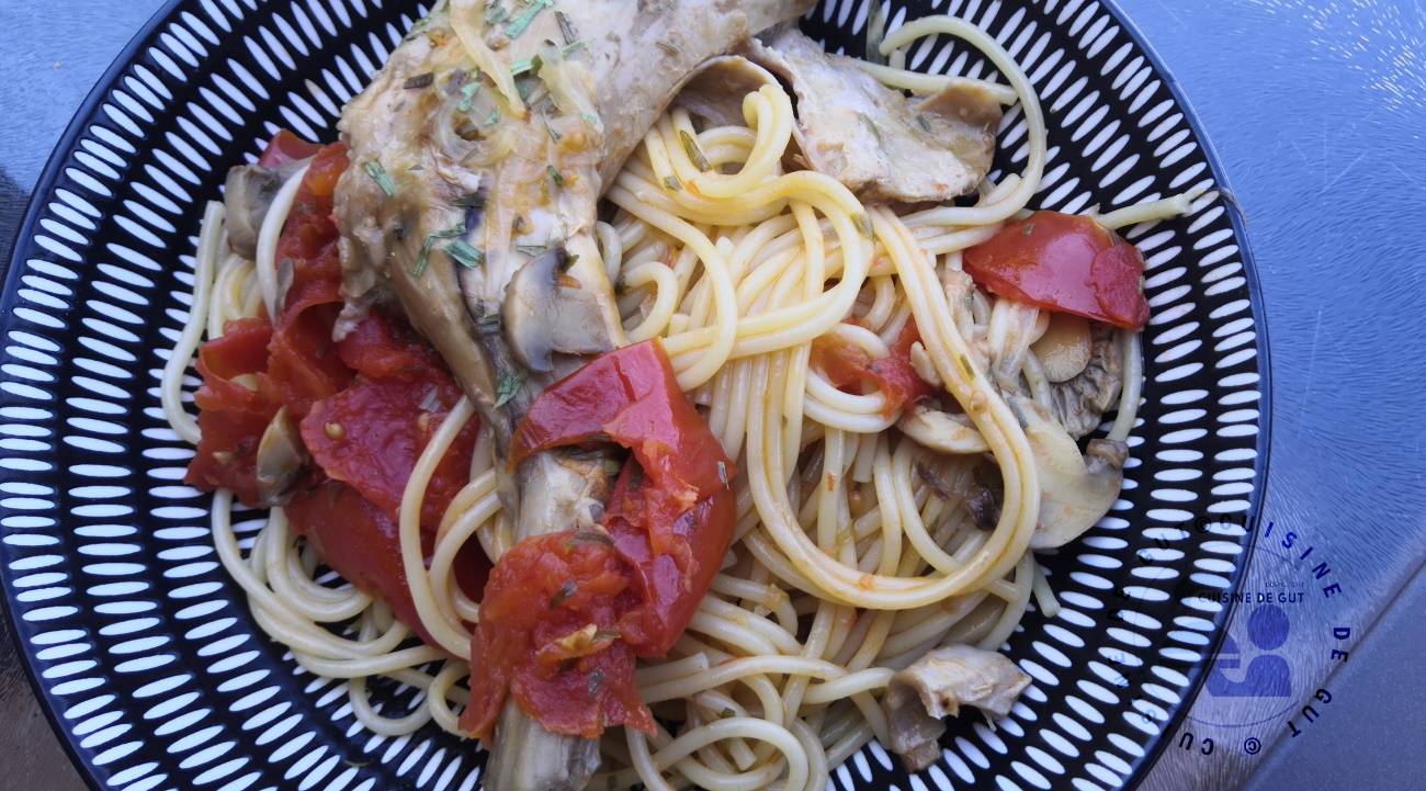 Published at 1300 × 721 in Gigolettes de lapin spaghetti gingembre et estragon