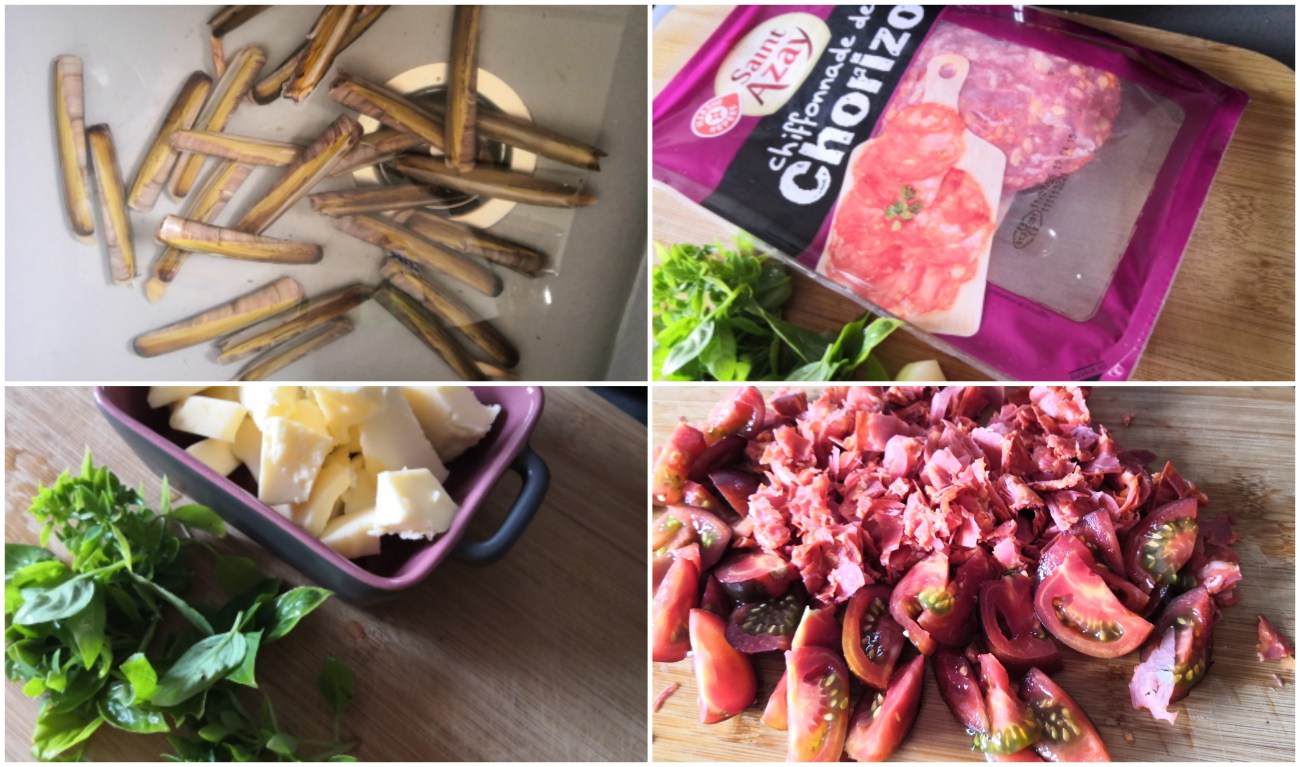- Ajouter quelques quartiers de tomates et quelques morceaux de chorizo.