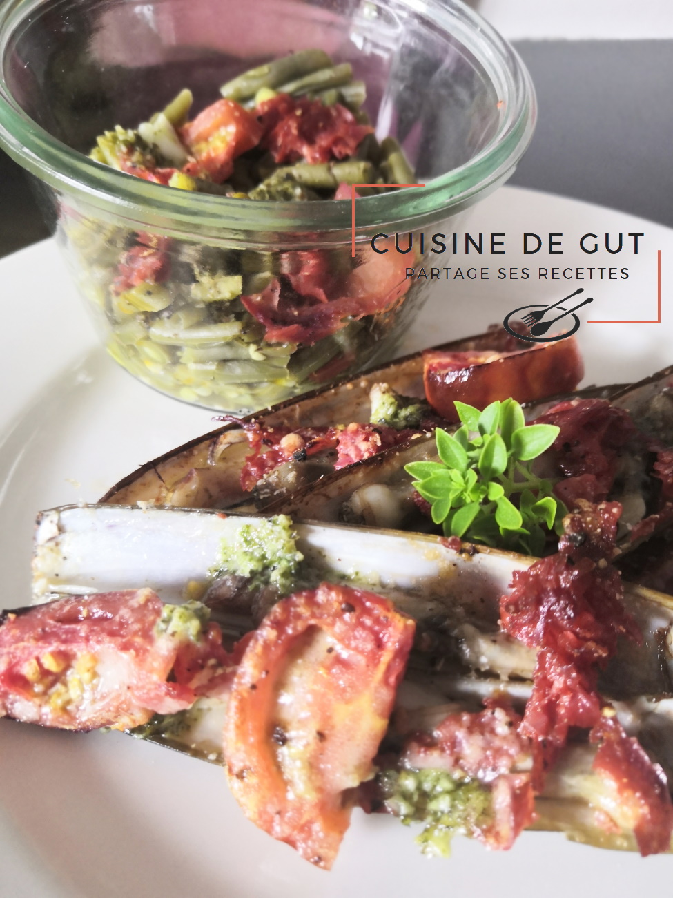 Cette préparation est super pour manger avec des coquillages comme aussi les moules par exemple ! nous l’avons beaucoup appréciée. Par contre les couteaux je n’ai pas été trop convaincue de leur texture.. à voit cuits à la plancha il parait qu’ils sont meilleurs ! gros bisous Bonne journée également !