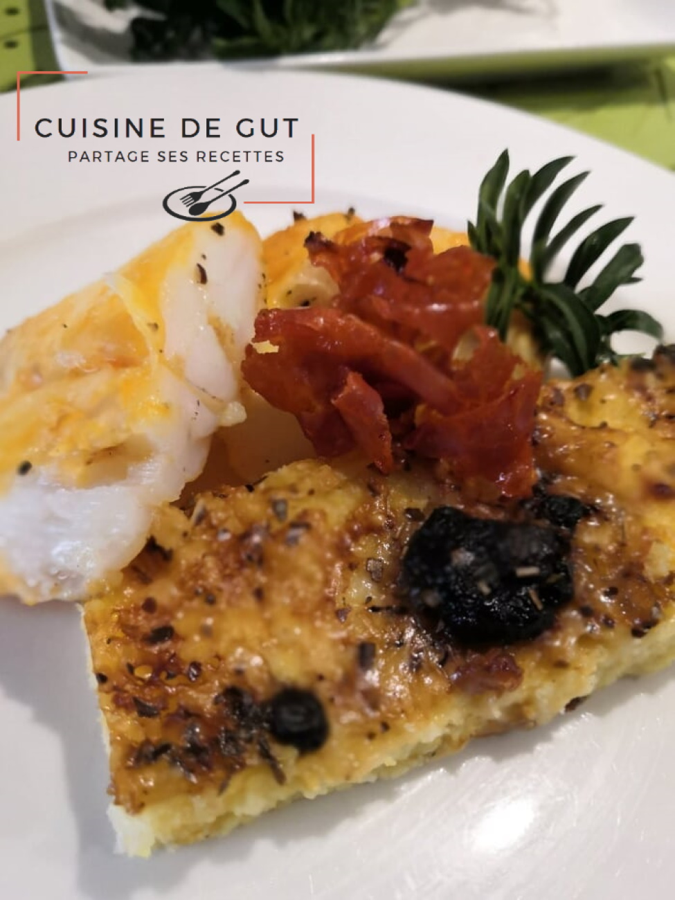Cabillaud fumé chorizo et polenta aux parfums d’olive et origan