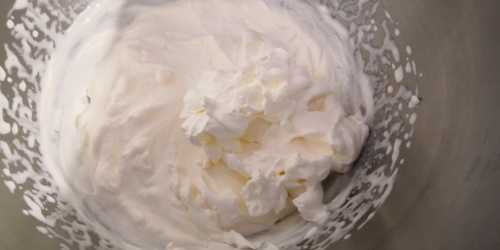 - Le lendemain, verser la crème au mascarpone dans le bol du cooking et monter la crème en chantilly à l’aide du fouet ballon.