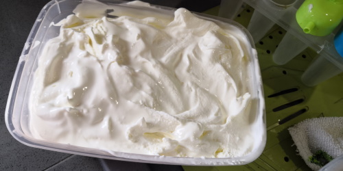 - Ajouter le Yaourt grecque à la chantilly et mélanger MELANGE 1 jusqu’à l’obtention d’une préparation bien homogène.