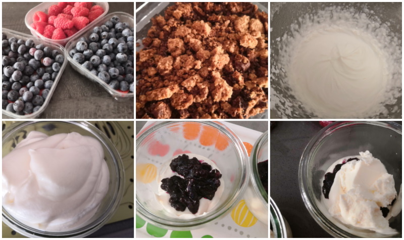 Trifle de Myrtilles, Framboises et glace au Yaourt grec bien planquée !