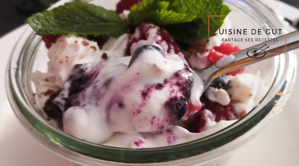 Trifle de Myrtilles, Framboises et glace au Yaourt grec bien planquée !