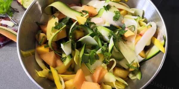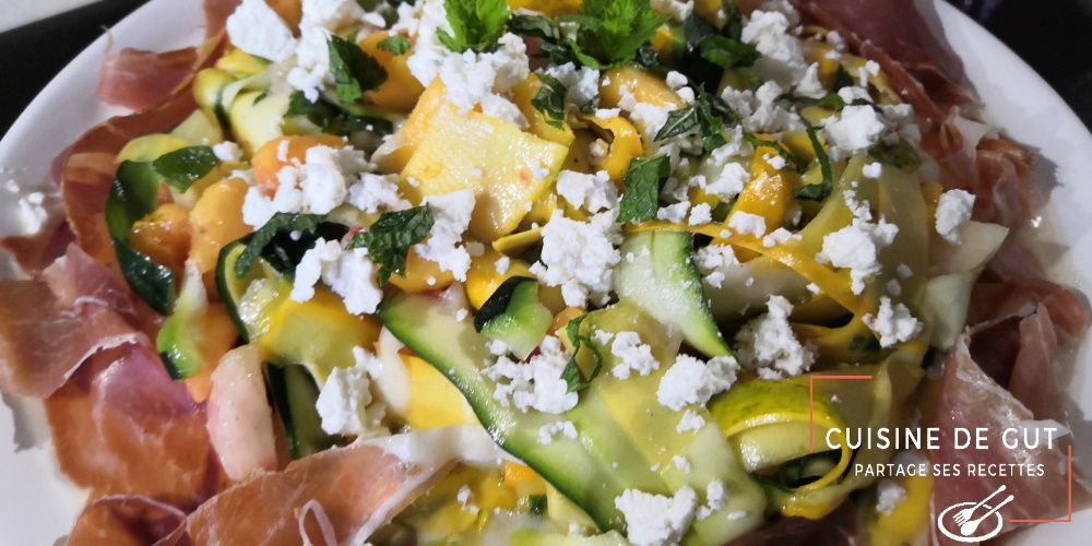 Salade estivale de courgettes fruits jambon et feta, une recette facile