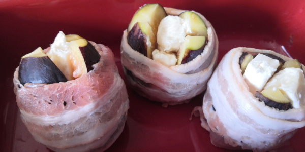 Figues et chèvre roulés avec de la poitrine fumée Corse