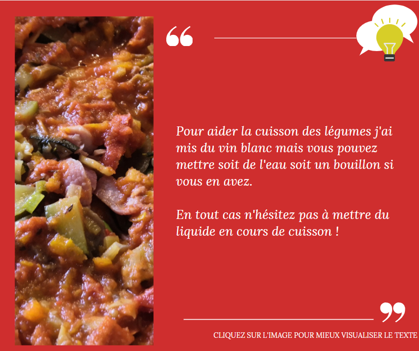 Faites avec et avec de bons légumes franchement j’en aurais bien repris une 2ème part ! Heureusement il en reste pour une 2ème fois !
