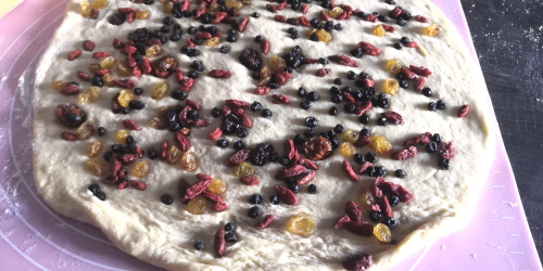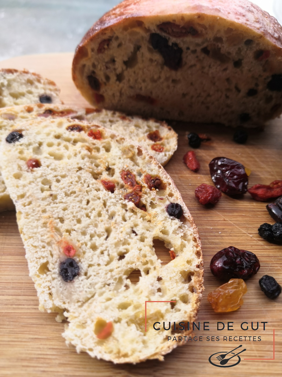Boule de pain à la banane et aux raisins secs, figues séchées et baies de Goji