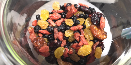 60 gr de mélange de raisins secs blonds et noirs, de morceaux de figues séchées et de baies de Goji