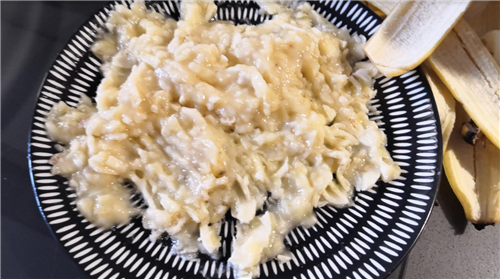 - Eplucher les bananes et les écraser complètement avec une fourchette