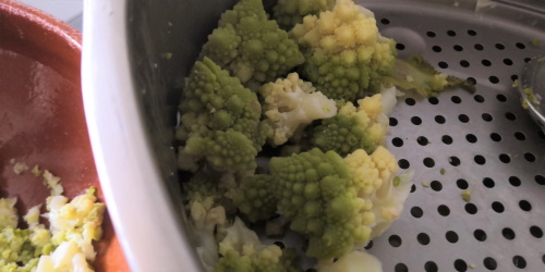- Mettre les bouquets de chou Romanesco dans un cuiseur vapeur et cuire durant 20 minutes environ à 100° c