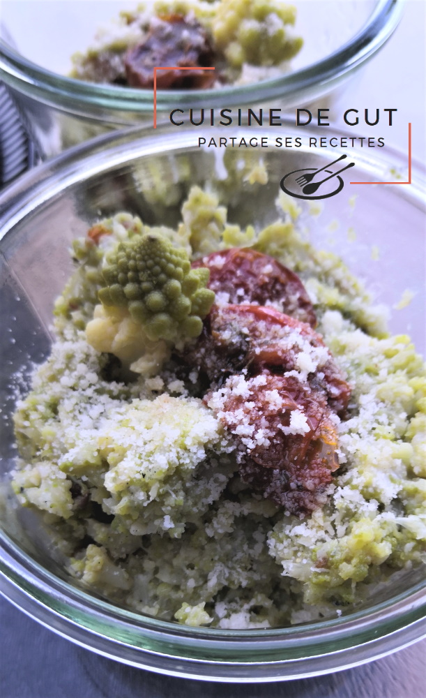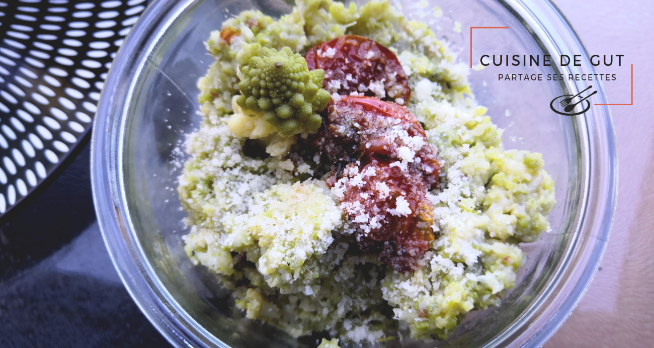 Gratin Chou Romanesco, tomates confites et parmesan, une recette facile