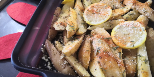 - Couper le demi citron en rondelles et les répartir sur les pommes de terre