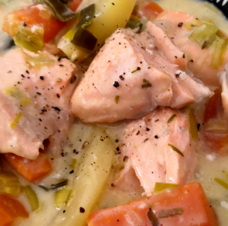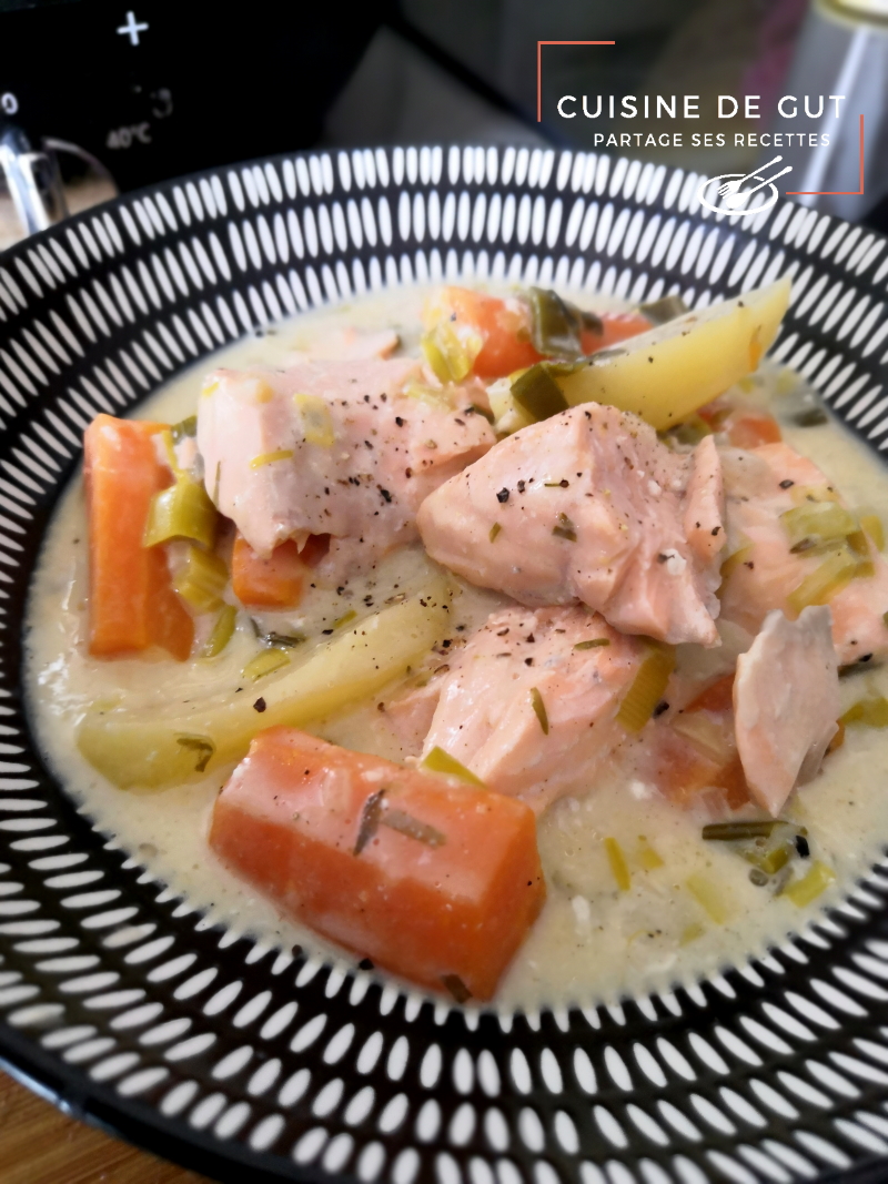 - Servir dans des assiettes creuse, saumon et légumes avec un peu de sauce.